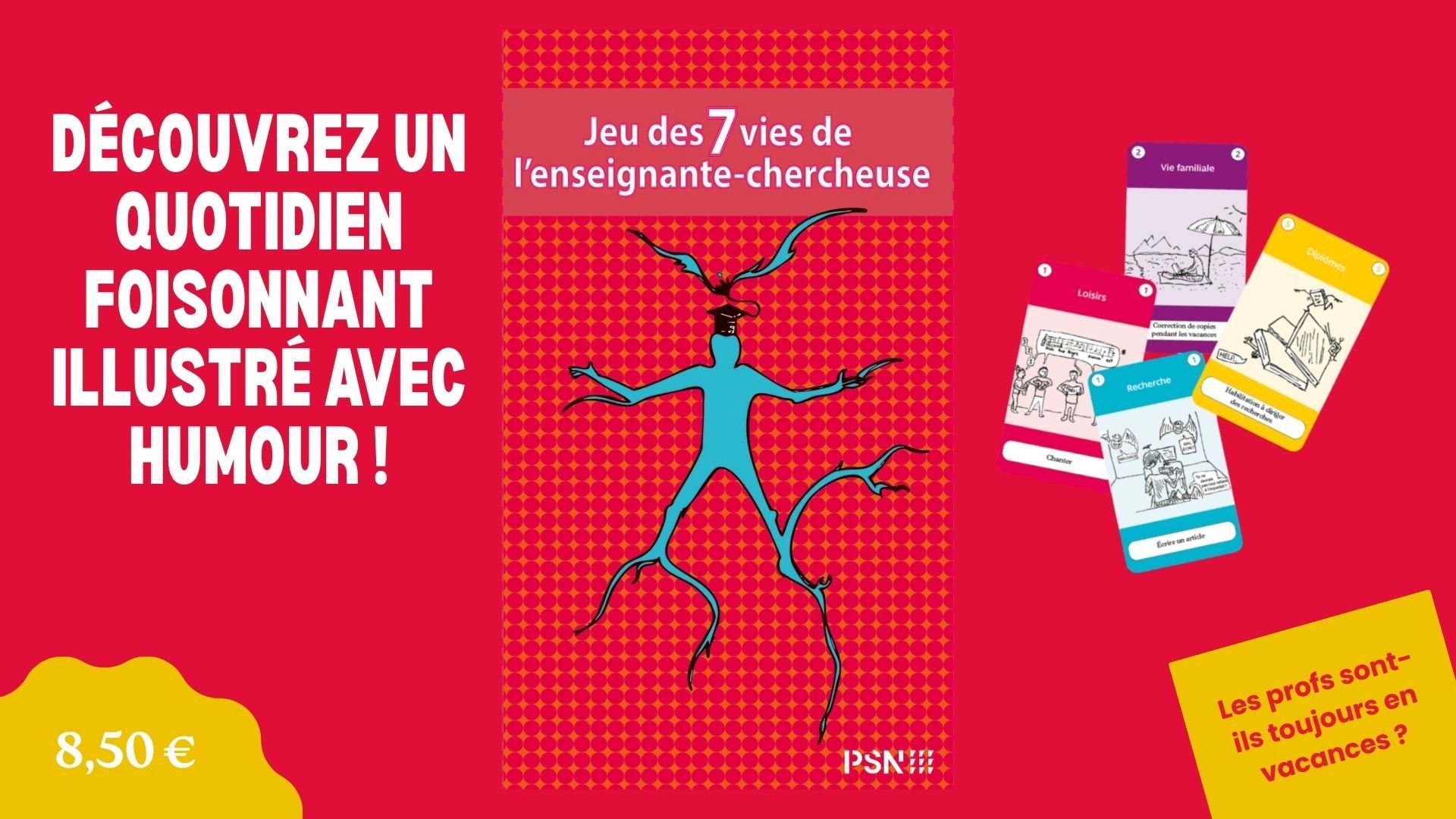Jeu des 7 vies de l'enseignante-chercheuse | A valider | Sociétés | Maud Pérez-Simon | Pour la première fois, les Presses de la Sorbonne Nouvelle publient un jeu de cartes, calqué sur le jeu des 7 familles : le Jeu des sept vies de l’enseignante-chercheuse. Il permet de découvrir les différents aspects du métier de chercheur·se tout en soulevant les difficultés et les enjeux du milieu académique actuel. Ce jeu de société constitue un outil ludique et pédagogique pour faire découvrir la recherche aux étudiant·es de master ainsi qu’aux doctorant·es. Il a été conçu par Maud Pérez-Simon, chercheuse en littérature médiévale, et illustré par son fils Gabriel, 12 ans, qui pose sur sa mère un regard amusé et critique. | Dec 17, 2025 9:21 AM | 15 | 2-4 | Non | Jeu de plateau / Jeu de cartes | Payant | Dec 17, 2025 9:21 AM | ||||||||||||||